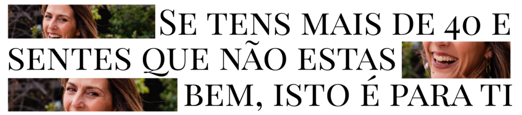 A Mentoria [NOME DA MENTORIA] é um acompanhamento em grupo, pensado para mulheres com mais de 40, que estão numa fase de transição e sentem que precisam de parar, olhar para si e reorganizar a forma como estão a viver.